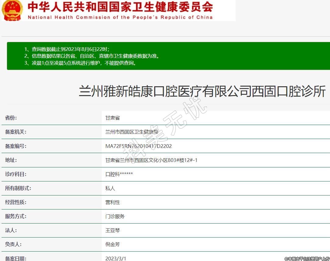備案機關:蘭州市西固區(qū)衛(wèi)生健康局