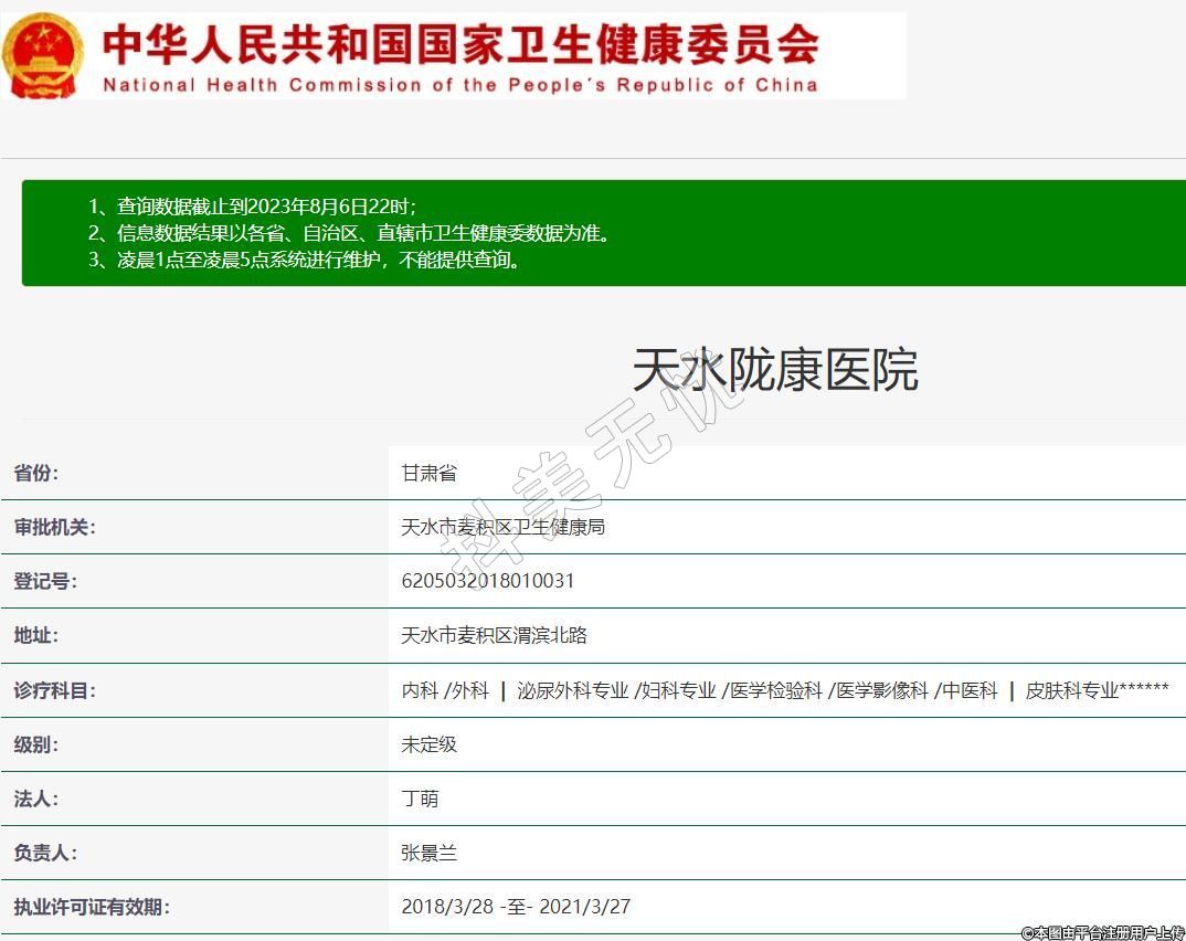 審批機關:天水市麥積區(qū)衛(wèi)生健康局