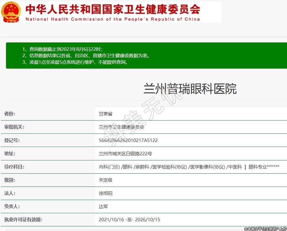 診療科目:內(nèi)科(門診) /眼科 /麻醉科 /醫(yī)學(xué)檢驗(yàn)科(協(xié)議) /醫(yī)學(xué)影像科(協(xié)議) /中醫(yī)科 | 眼科專業(yè)******