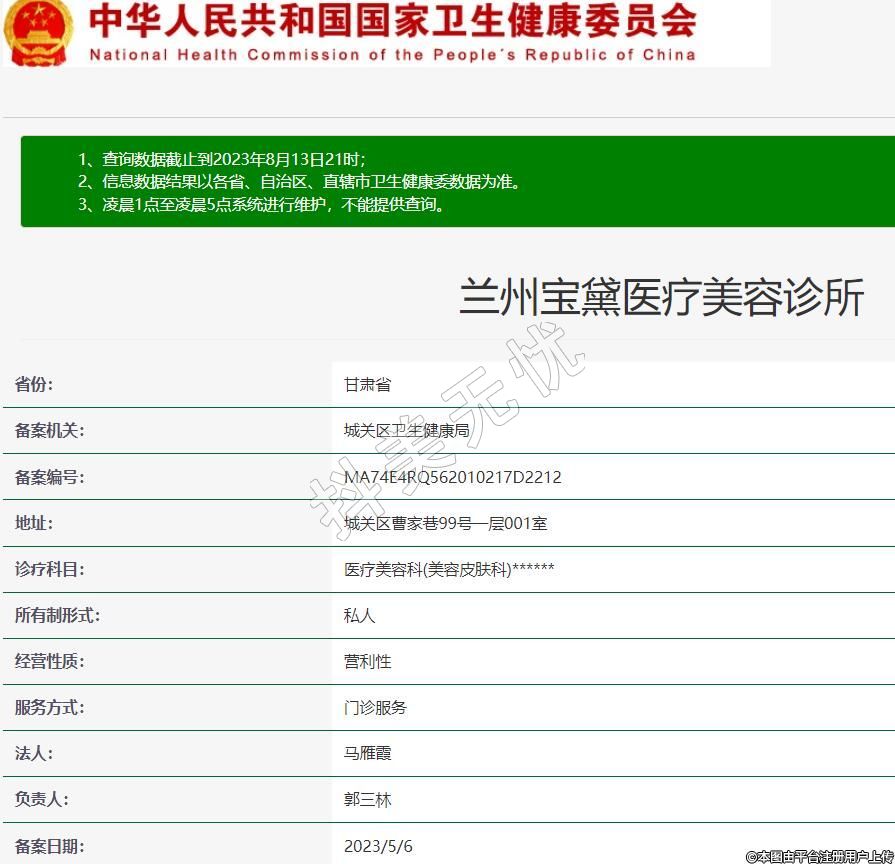 蘭州寶黛醫(yī)療美容診所診療科目:醫(yī)療美容科(美容皮膚科)******