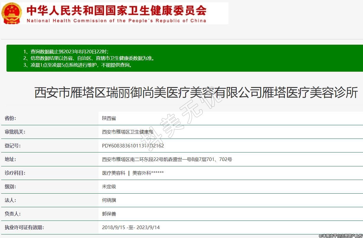 西安市雁塔區(qū)瑞麗御尚美醫(yī)療美容有限公司雁塔醫(yī)療美容診所