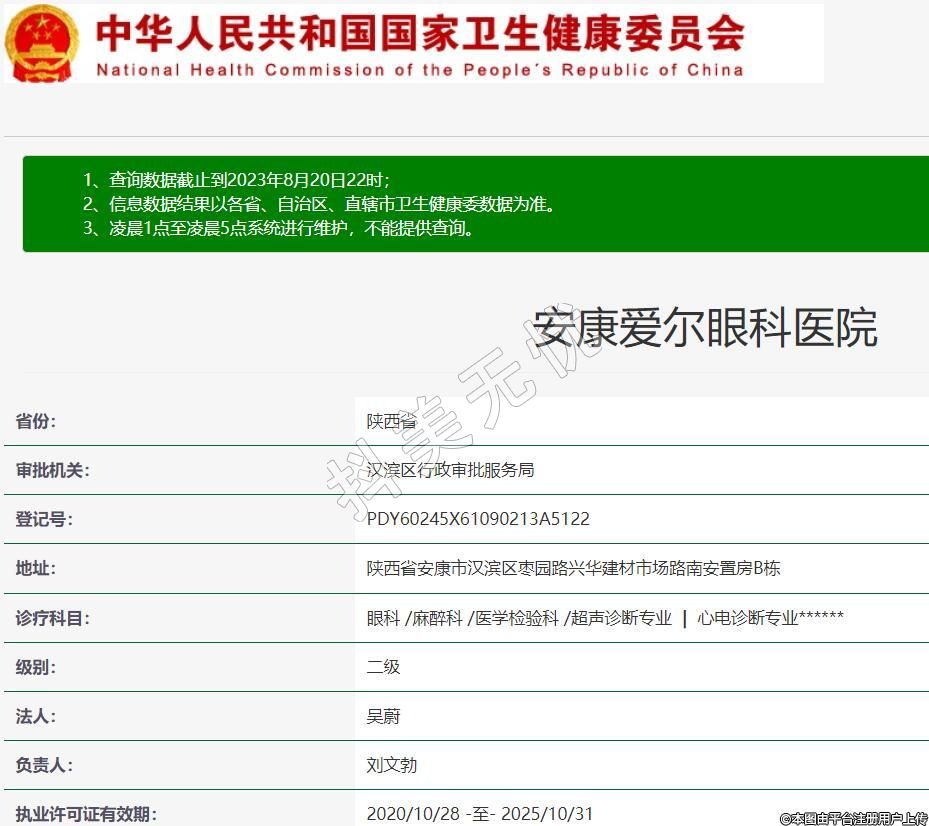 安康愛爾眼科, 診療科目:眼科 /麻醉科 /醫(yī)學(xué)檢驗科 /超聲診斷專業(yè) | 心電診斷專業(yè)******