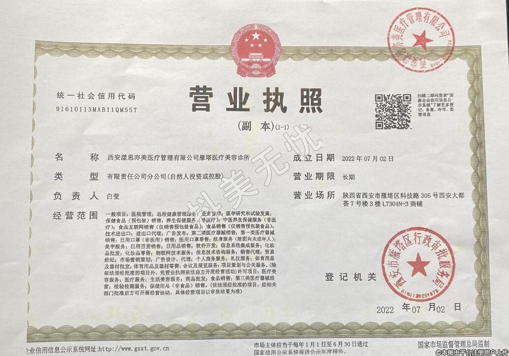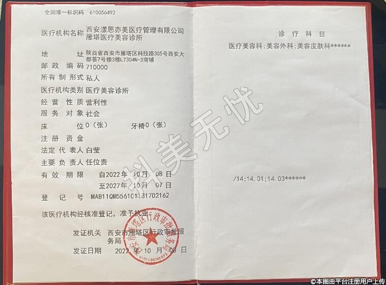 醫(yī)療機(jī)構(gòu)名稱(chēng):西安漾思亦美醫(yī)療管理有限公司雁塔醫(yī)療美容診所