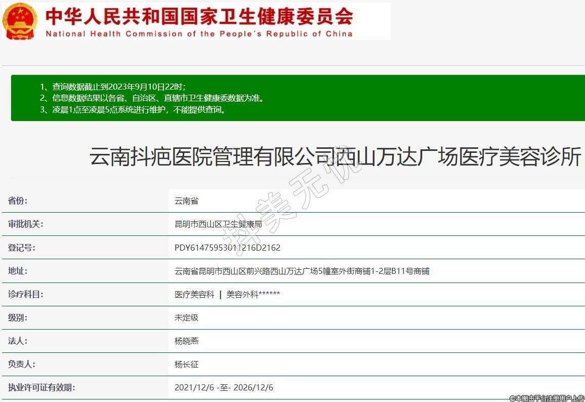 云南抖疤醫(yī)院管理有限公司西山萬(wàn)達(dá)廣場(chǎng)醫(yī)療美容診所