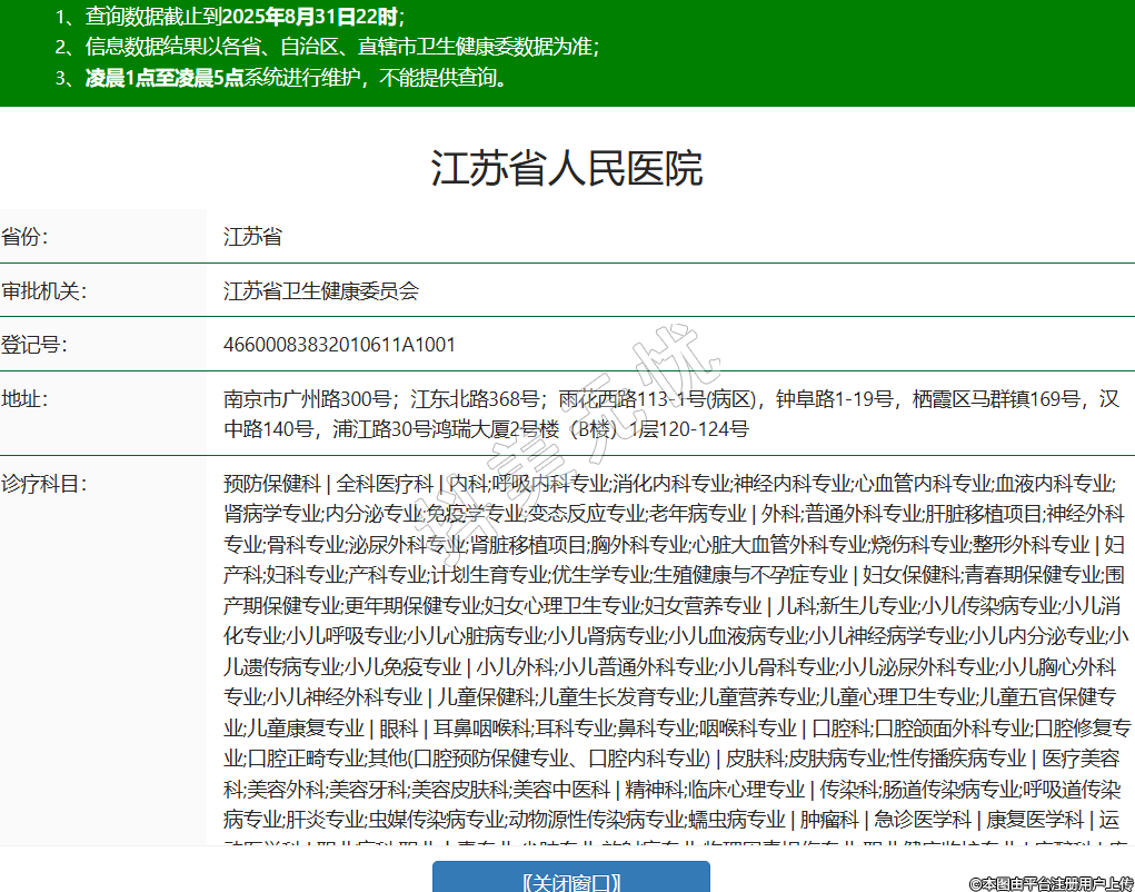 省份:江蘇省審批機(jī)關(guān):江蘇省衛(wèi)生健康委員會(huì)登記號(hào):46600083832010611A1001地址:南京市廣州路300號(hào);江東北路368號(hào);雨花西路113-1號(hào)(病區(qū)),鐘阜路1-19號(hào),棲霞區(qū)馬群鎮(zhèn)169號(hào),漢中路140號(hào),浦江路30號(hào)鴻瑞大廈2號(hào)樓(B樓)1層120-124號(hào)診療科目:預(yù)防保健科 | 全科醫(yī)療科 | 內(nèi)科;呼吸內(nèi)科專業(yè);消化內(nèi)科專業(yè);神經(jīng)內(nèi)科專業(yè);心血管內(nèi)科專業(yè);血液內(nèi)科專業(yè);腎病學(xué)專業(yè);內(nèi)分泌專業(yè);免疫學(xué)專業(yè);變態(tài)反應(yīng)專業(yè);老年病專業(yè) | 外科;普通外科專業(yè);肝臟移植項(xiàng)目;神經(jīng)外科專業(yè);骨科專業(yè);泌尿外科專業(yè);腎臟移植項(xiàng)目;胸外科專業(yè);心臟大血管外科專業(yè);燒傷科專業(yè);整形外科專業(yè) | 婦產(chǎn)科;婦科專業(yè);產(chǎn)科專業(yè);計(jì)劃生育專業(yè);優(yōu)生學(xué)專業(yè);生殖健康與不孕癥專業(yè) | 婦女保健科;青春期保健專業(yè);圍產(chǎn)期保健專業(yè);更年期保健專業(yè);婦女心理衛(wèi)生專業(yè);婦女營(yíng)養(yǎng)專業(yè) | 兒科;新生兒專業(yè);小兒傳染病專業(yè);小兒消化專業(yè);小兒呼吸專業(yè);小兒心臟病專業(yè);小兒腎病專業(yè);小兒血液病專業(yè);小兒神經(jīng)病學(xué)專業(yè);小兒內(nèi)分泌專業(yè);小兒遺傳病專業(yè);小兒免疫專業(yè) | 小兒外科;小兒普通外科專業(yè);小兒骨科專業(yè);小兒泌尿外科專業(yè);小兒胸心外科專業(yè);小兒神經(jīng)外科專業(yè) | 兒童保健科;兒童生長(zhǎng)發(fā)育專業(yè);兒童營(yíng)養(yǎng)專業(yè);兒童心理衛(wèi)生專業(yè);兒童五官保健專業(yè);兒童康復(fù)專業(yè) | 眼科 | 耳鼻咽喉科;耳科專業(yè);鼻科專業(yè);咽喉科專業(yè) | 口腔科;口腔頜面外科專業(yè);口腔修復(fù)專業(yè);口腔正畸專業(yè);其他(口腔預(yù)防保健專業(yè)、口腔內(nèi)科專業(yè)) | 皮膚科;皮膚病專業(yè);性傳播疾病專業(yè) | 醫(yī)療美容科;美容外科;美容牙科;美容皮膚科;美容中醫(yī)科 | 精神科;臨床心理專業(yè) | 傳染科;腸道傳染病專業(yè);呼吸道傳染病專業(yè);肝炎專業(yè);蟲媒傳染病專業(yè);動(dòng)物源性傳染病專業(yè);蠕蟲病專業(yè) | 腫瘤科 | 急診醫(yī)學(xué)科 | 康復(fù)醫(yī)學(xué)科 | 運(yùn)動(dòng)醫(yī)學(xué)科 | 職業(yè)病科;職業(yè)中毒專業(yè);塵肺專業(yè);放射病專業(yè);物理因素?fù)p傷專業(yè);職業(yè)健康監(jiān)護(hù)專業(yè) | 麻醉科 | 疼痛科 | 重癥醫(yī)學(xué)科 | 醫(yī)學(xué)檢驗(yàn)科;臨床體液、血液專業(yè);臨床微生物學(xué)專業(yè);臨床化學(xué)檢驗(yàn)專業(yè);臨床免疫、血清學(xué)專業(yè);臨床細(xì)胞分子遺傳學(xué)專業(yè) | 病理科 | 醫(yī)學(xué)影像科;X線診斷專業(yè);CT診斷專業(yè);磁共振成像診斷專業(yè);核醫(yī)學(xué)專業(yè);超聲診斷專業(yè);心電診斷專業(yè);腦電及腦血流圖診斷專業(yè);神經(jīng)肌肉電圖專業(yè);介入放射學(xué)專業(yè);放射治療專業(yè) | 中醫(yī)科;針灸科專業(yè);推拿科專業(yè)******級(jí)別:三級(jí)法定代表人:劉云主要負(fù)責(zé)人:劉云執(zhí)業(yè)許可證有效期:2019/12/06 -至- 2034/12/05 -