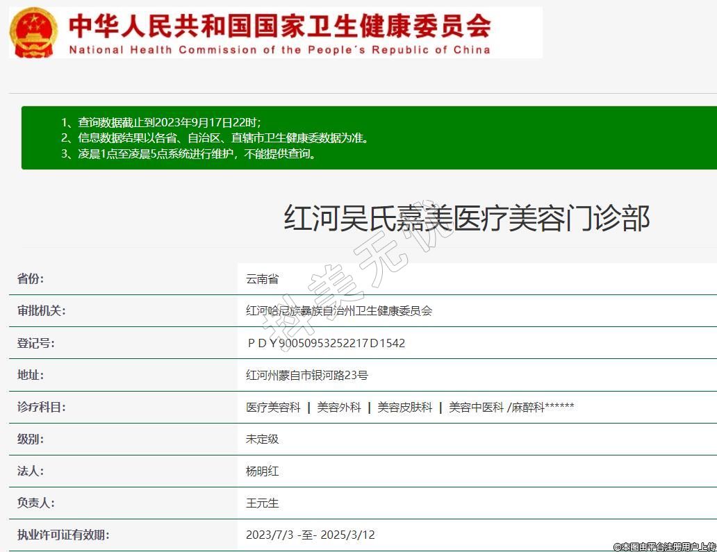 紅河吳氏嘉美醫(yī)療美容門診部,診療科目:醫(yī)療美容科 | 美容外科 | 美容皮膚科 | 美容中醫(yī)科 /麻醉科******