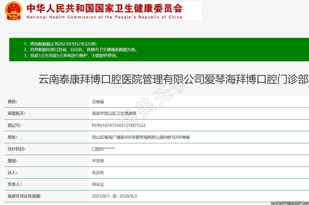 云南泰康拜博口腔(愛琴海)診療科目:口腔科******