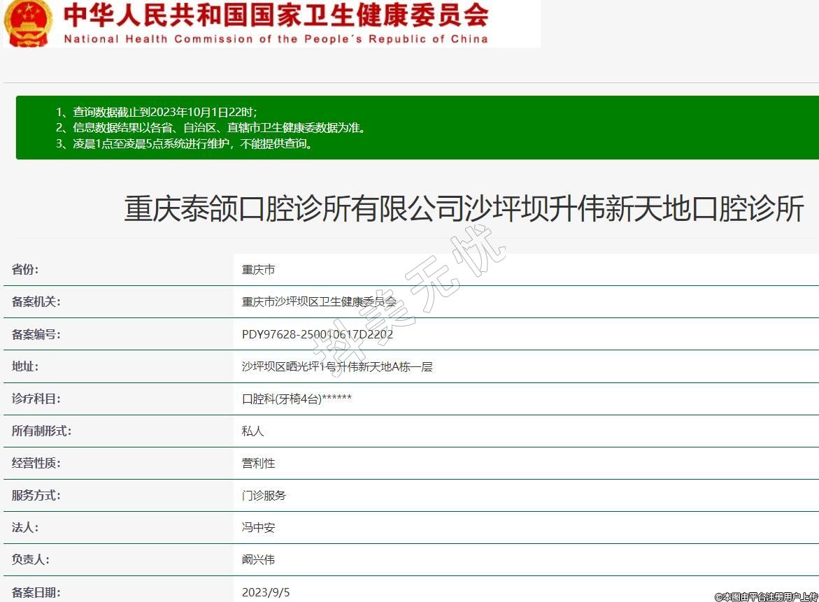 重慶泰頜口腔診所有限公司沙坪壩升偉新天地口腔診所