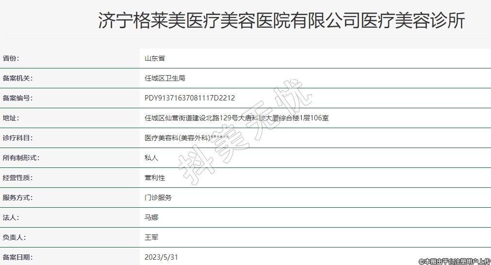 濟(jì)寧格萊美醫(yī)療美容醫(yī)院有限公司醫(yī)療美容診所