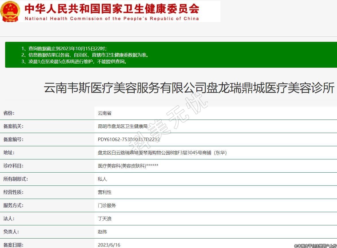 云南韋斯醫(yī)療美容服務有限公司盤龍瑞鼎城醫(yī)療美容診所