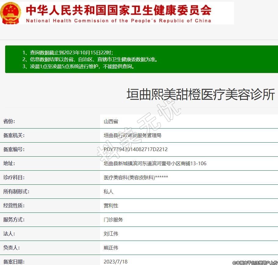 垣曲熙美甜橙醫(yī)療美容診所,診療科目:醫(yī)療美容科(美容皮膚科)******