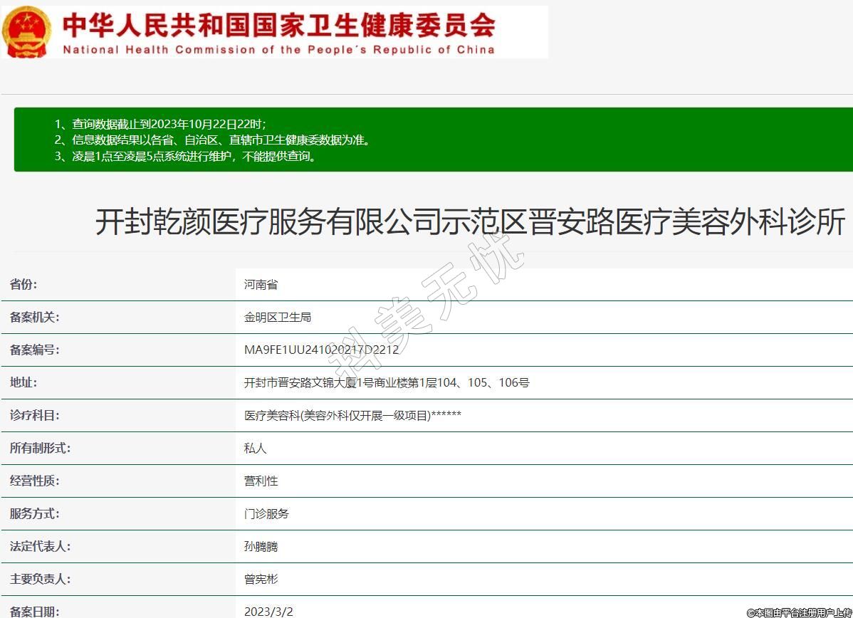 開封乾顏醫(yī)療服務(wù)有限公司示范區(qū)晉安路醫(yī)療美容外科診所