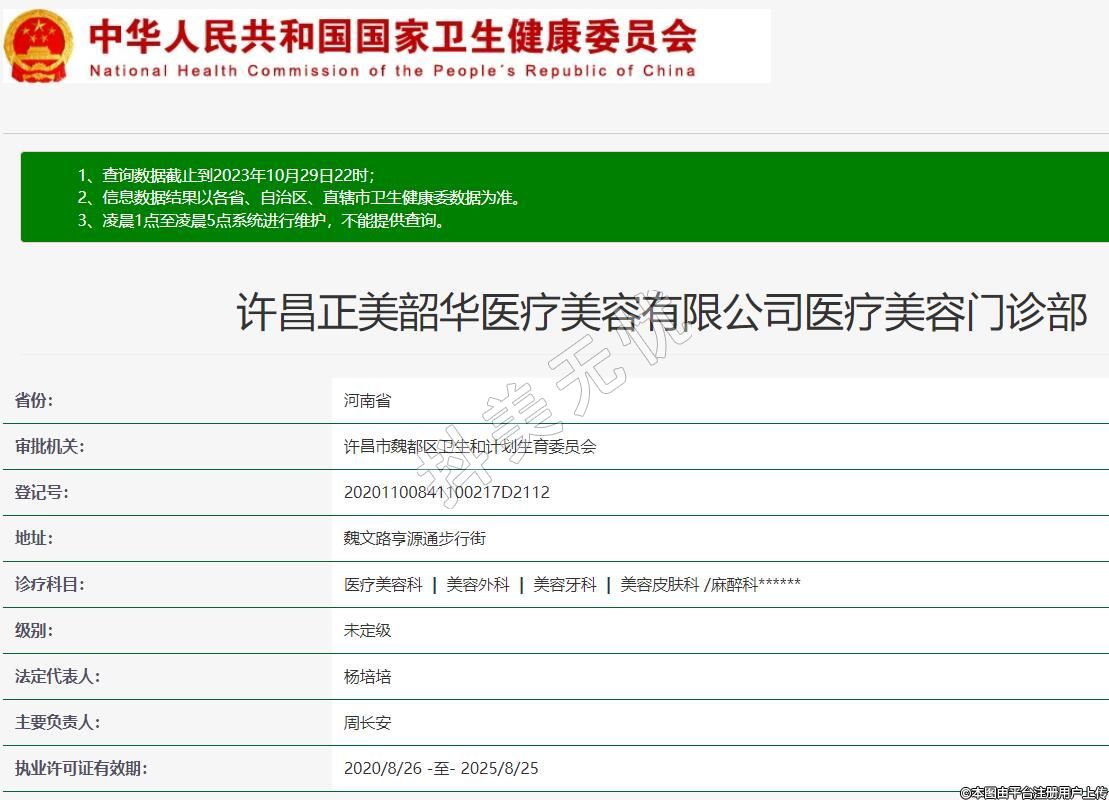許昌正美韶華醫(yī)療美容有限公司醫(yī)療美容門診部