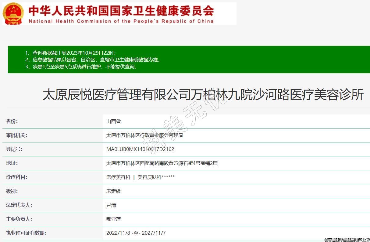 太原辰悅醫(yī)療管理有限公司萬柏林九院沙河路醫(yī)療美容診所