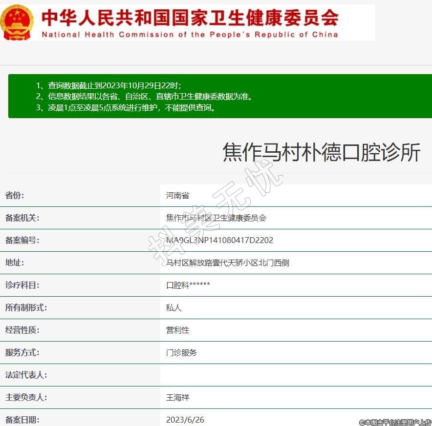 備案機(jī)關(guān):焦作市馬村區(qū)衛(wèi)生健康委員會