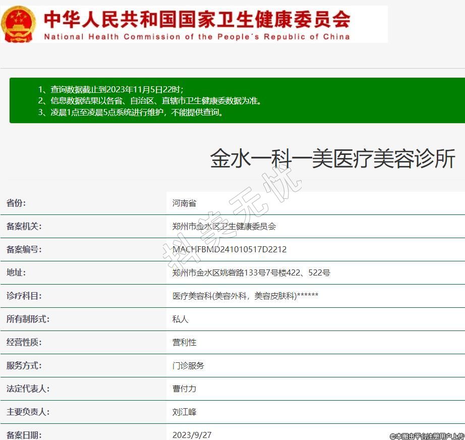 備案機關:鄭州市金水區(qū)衛(wèi)生健康委員會