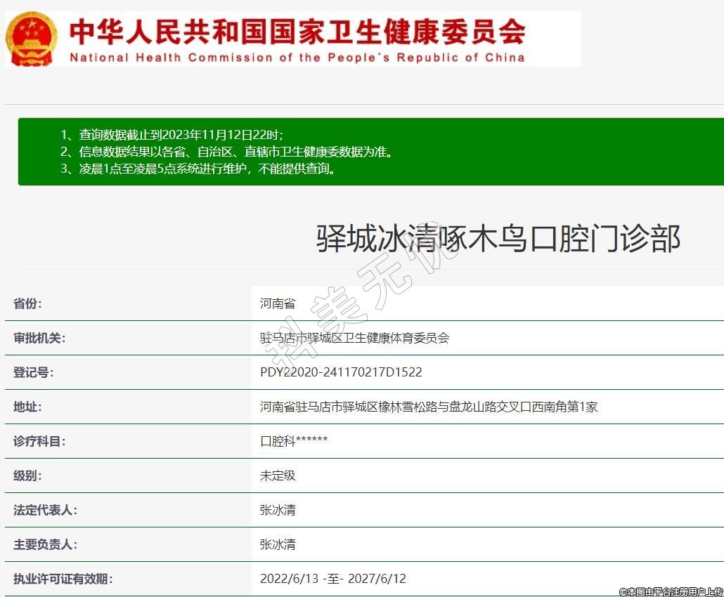 審批機關(guān):駐馬店市驛城區(qū)衛(wèi)生健康體育委員會