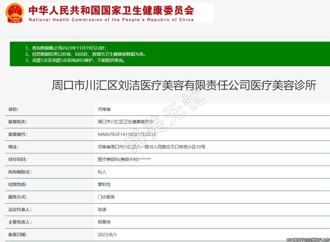 周口市川匯區(qū)劉潔醫(yī)療美容有限責任公司醫(yī)療美容診所