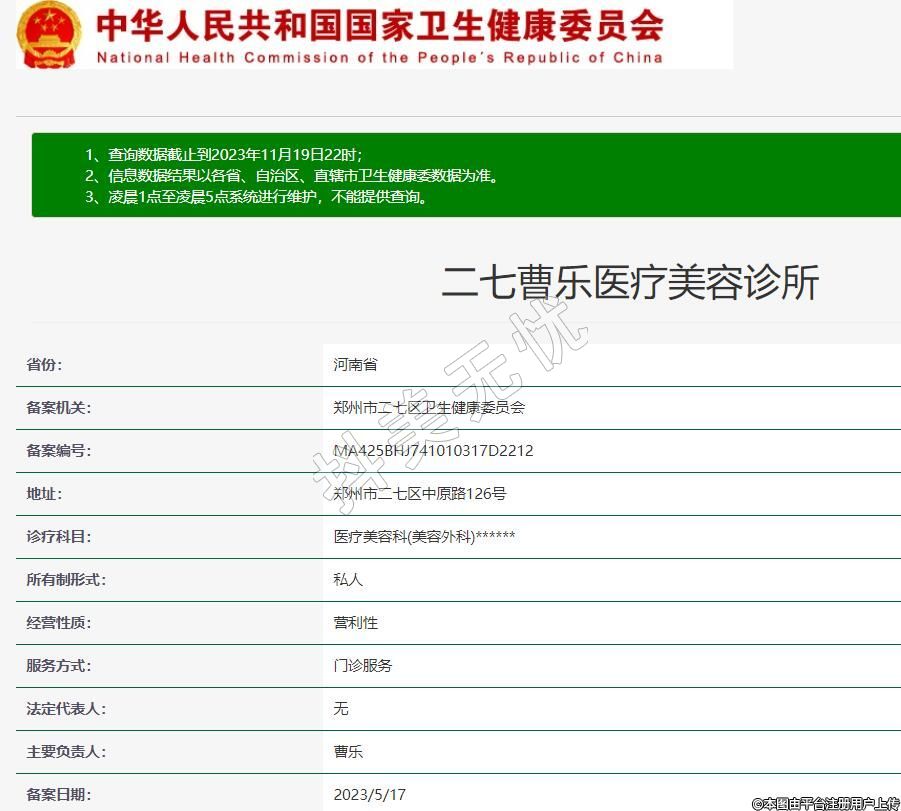 備案機關:鄭州市二七區(qū)衛(wèi)生健康委員會