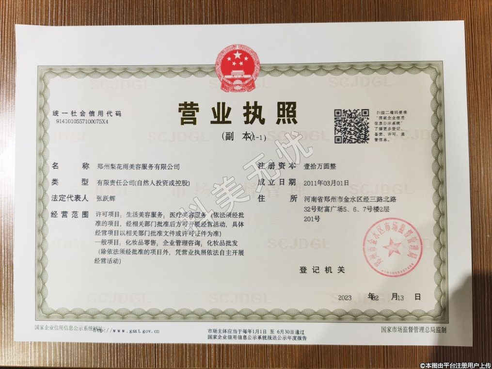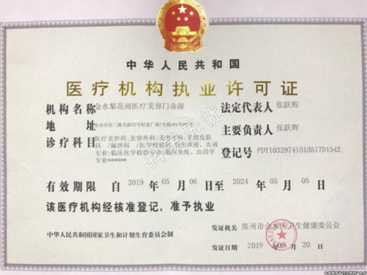 發(fā)證機關:鄭州市金水區(qū)衛(wèi)生健康委員會