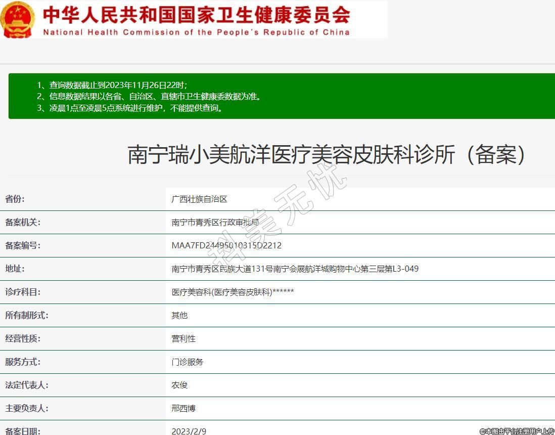 南寧瑞小美航洋醫(yī)療美容皮膚科診所(備案)
