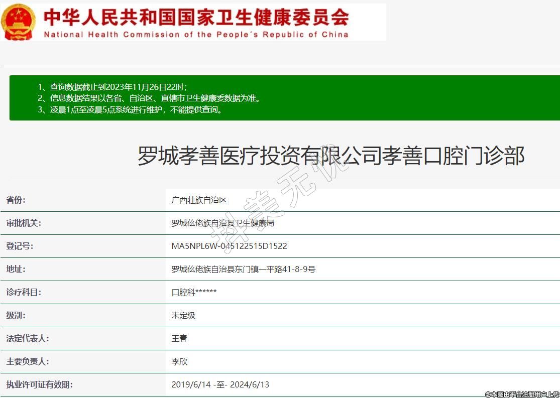 羅城孝善醫(yī)療投資有限公司孝善口腔門診部