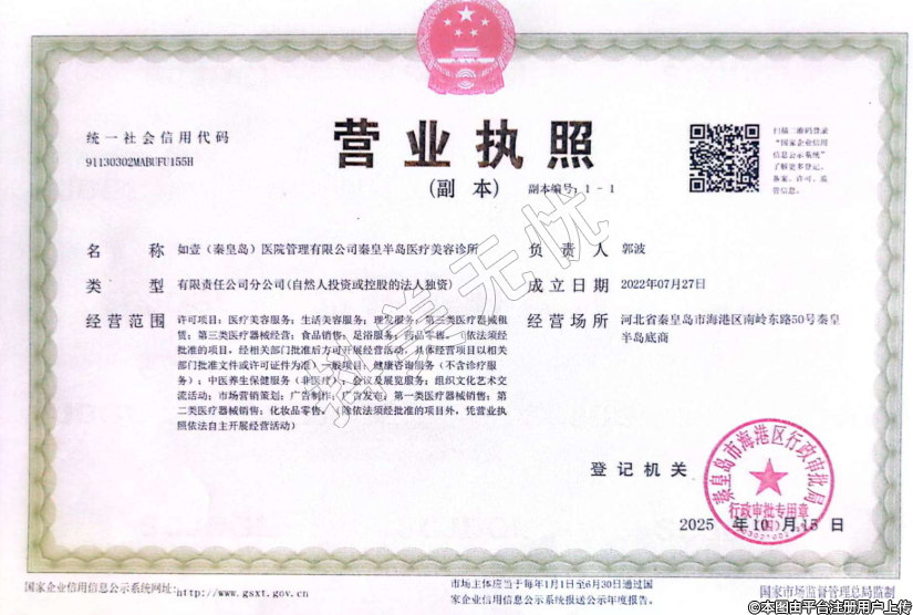 名稱(chēng):如壹(秦皇島)醫(yī)院管理有限公司秦皇半島醫(yī)療美容診所