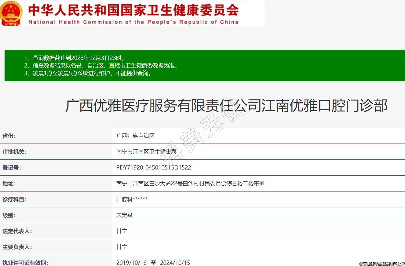 廣西優(yōu)雅醫(yī)療服務有限責任公司江南優(yōu)雅口腔門診部