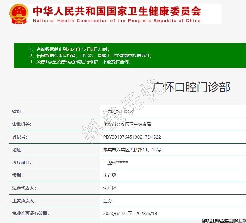 審批機關(guān):來賓市興賓區(qū)衛(wèi)生健康局