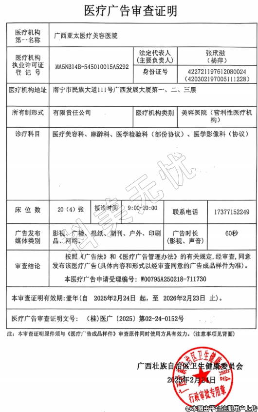 機構名稱:廣西亞太醫(yī)療美容醫(yī)院