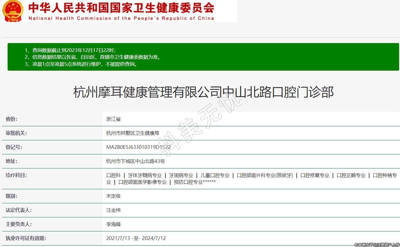 杭州摩耳健康管理有限公司中山北路口腔門診部