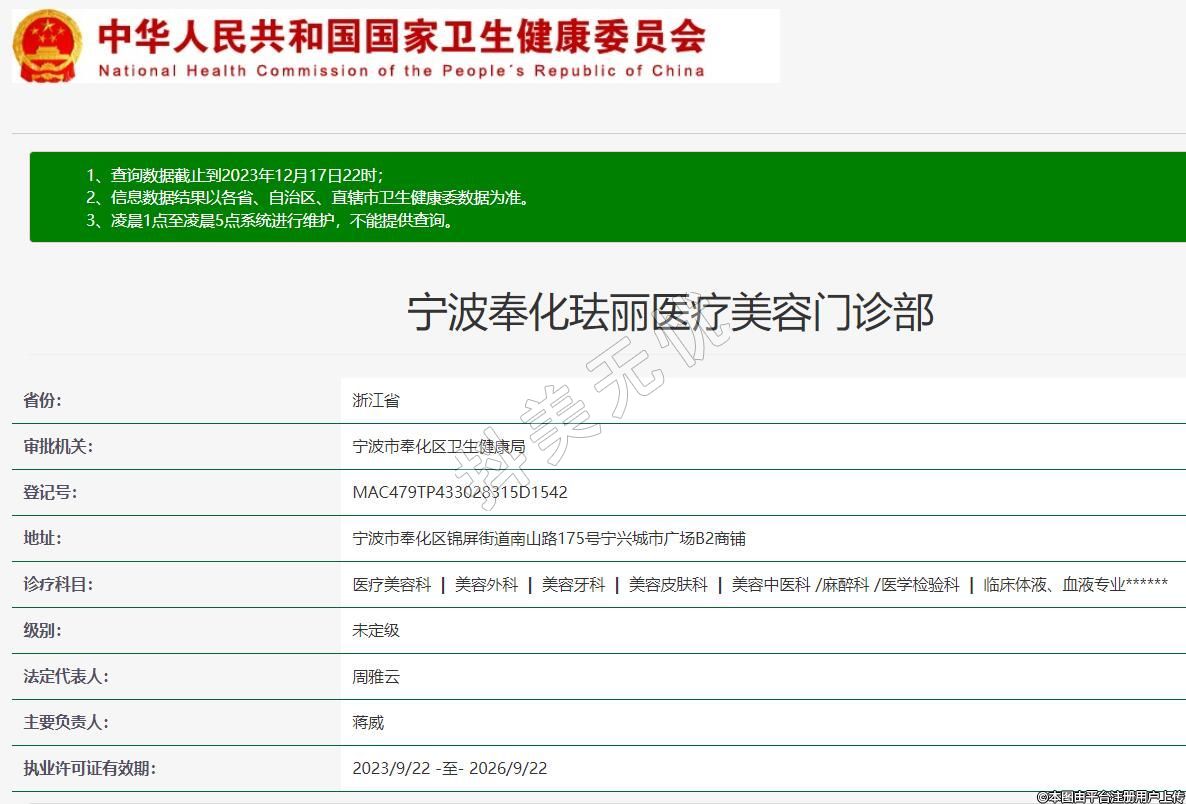 審批機關:寧波市奉化區(qū)衛(wèi)生健康局