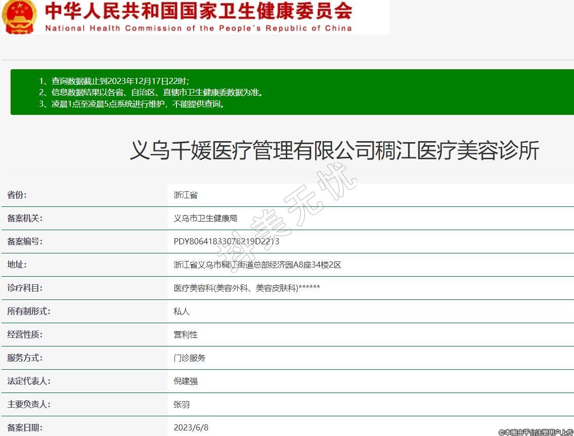 義烏千媛醫(yī)療管理有限公司稠江醫(yī)療美容診所