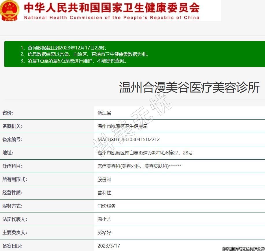 備案機關:溫州市甌海區(qū)衛(wèi)生健康局