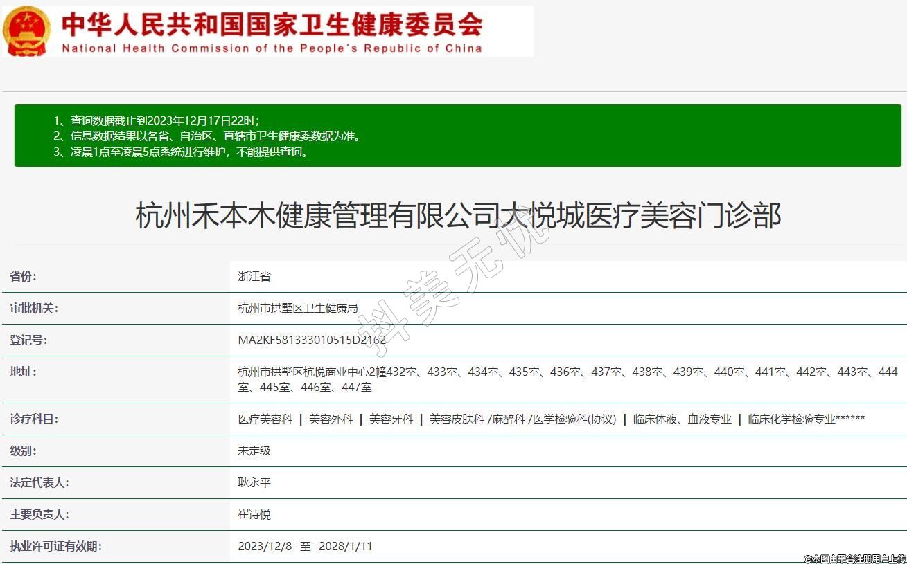 杭州禾本木健康管理有限公司大悅城醫(yī)療美容門(mén)診部