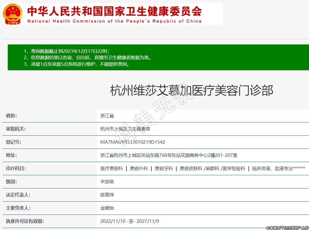 杭州維莎艾慕加醫(yī)療美容門診部,診療科目:醫(yī)療美容科 | 美容外科 | 美容牙科 | 美容皮膚科 /麻醉科 /醫(yī)學檢驗科 | 臨床體液、血液專業(yè)******