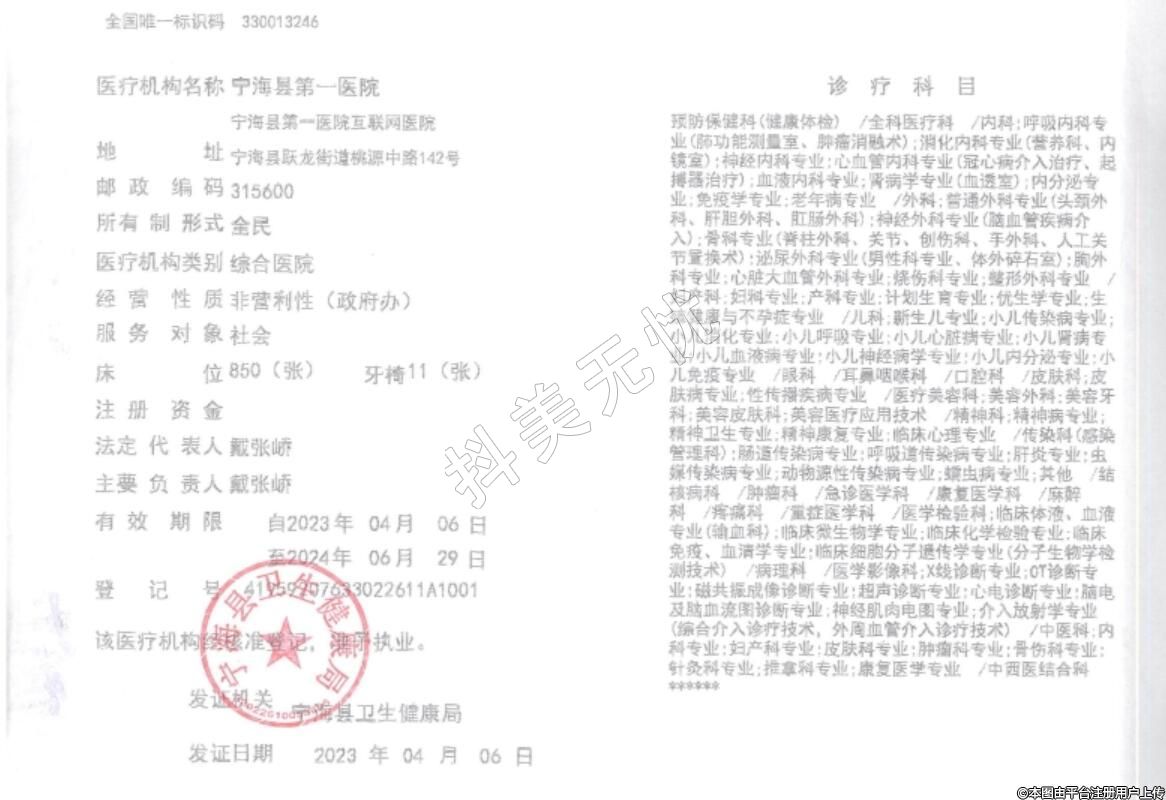 醫(yī)療機(jī)構(gòu)名稱:寧海晏第一醫(yī)院