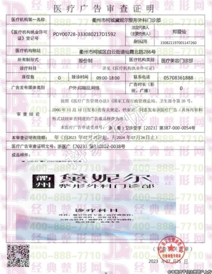 機構(gòu)名稱:衢州市柯城黛妮爾整形外科門診部