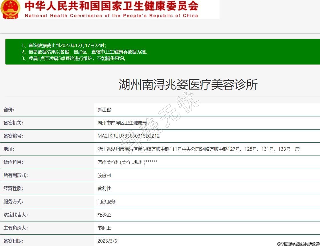 湖州南潯兆姿醫(yī)療美容診所,診療科目:醫(yī)療美容科(美容皮膚科)******