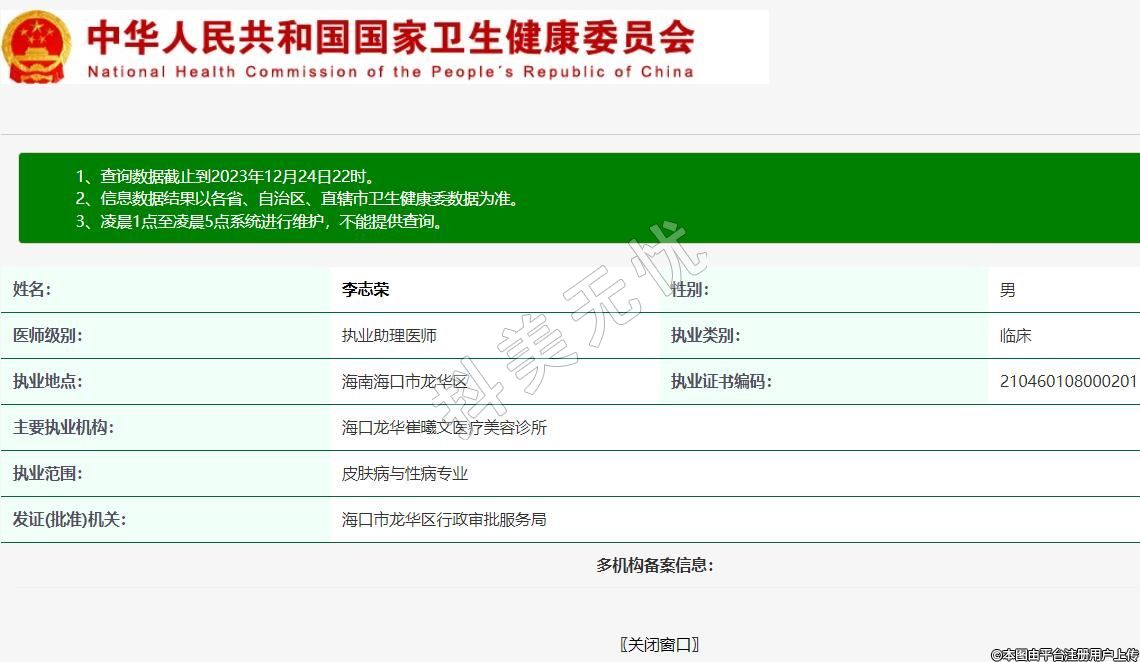 執(zhí)業(yè)許可證有效期:2022/9/16 -至- 2034/11/8