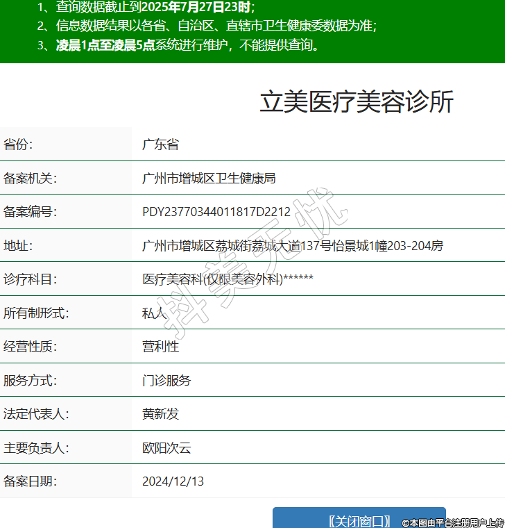 省份:廣東省備案機(jī)關(guān):廣州市增城區(qū)衛(wèi)生健康局備案編號:PDY23770344011817D2212地址:廣州市增城區(qū)荔城街荔城大道137號怡景城1幢203-204房診療科目:醫(yī)療美容科(僅限美容外科)******所有制形式:私人經(jīng)營性質(zhì):營利性服務(wù)方式:門診服務(wù)法定代表人:黃新發(fā)主要負(fù)責(zé)人:歐陽次云備案日期:2024/12/13 -