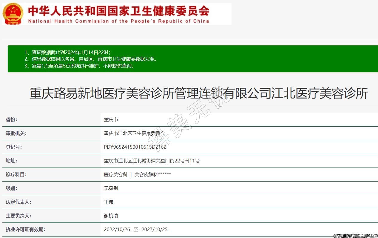 重慶路易新地醫(yī)療美容診所管理連鎖有限公司江北醫(yī)療美容診所