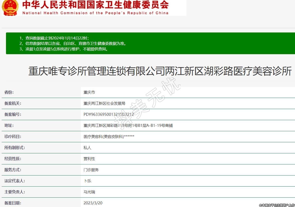 重慶唯專診所管理連鎖有限公司兩江新區(qū)湖彩路醫(yī)療美容診所