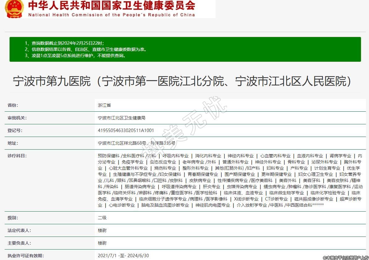 審批機關(guān):寧波市江北區(qū)衛(wèi)生健康局