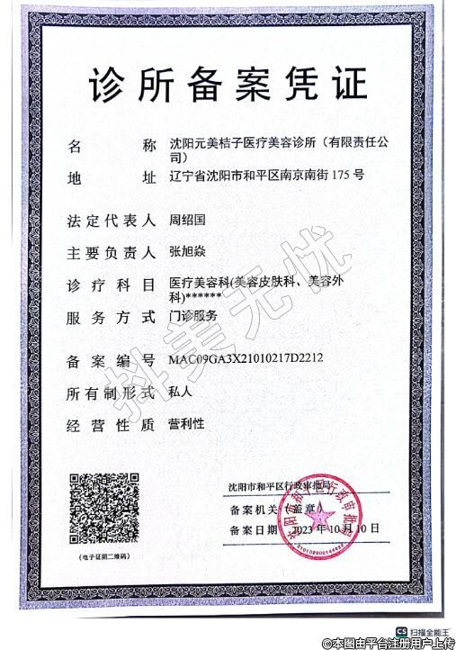 名稱:沈陽元美桔子醫(yī)療美容診所(有限責(zé)任公稱司)