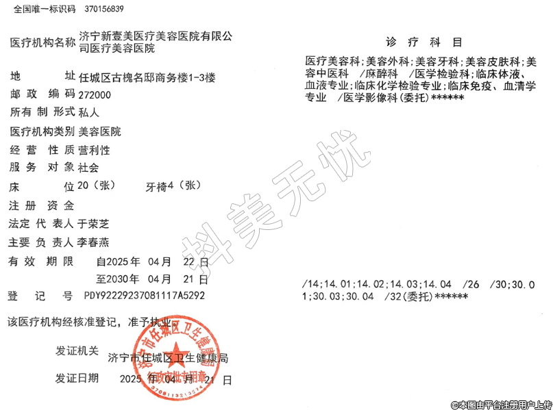 機構名稱:濟寧新壹美醫(yī)療美容醫(yī)院有限公司醫(yī)療美容醫(yī)院