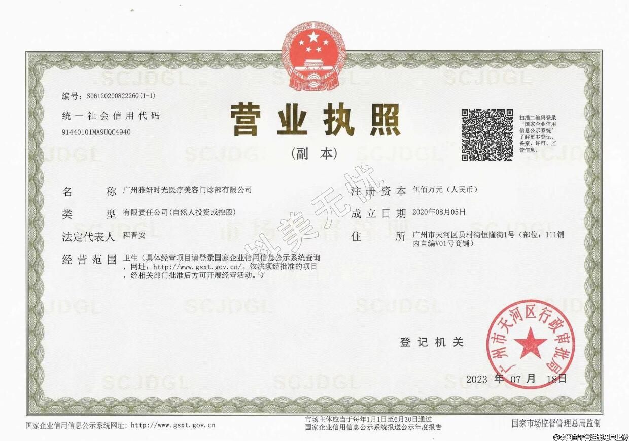 發(fā)證機關:廣州市天河區(qū)衛(wèi)生健康局