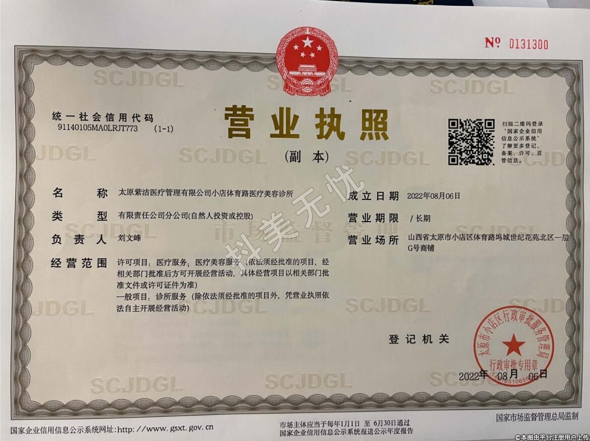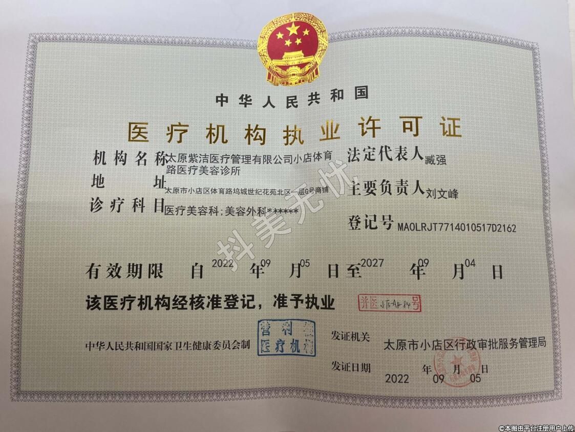 機(jī)構(gòu)名稱:太原紫潔醫(yī)療管理有限公司小店體育路醫(yī)療美容診所