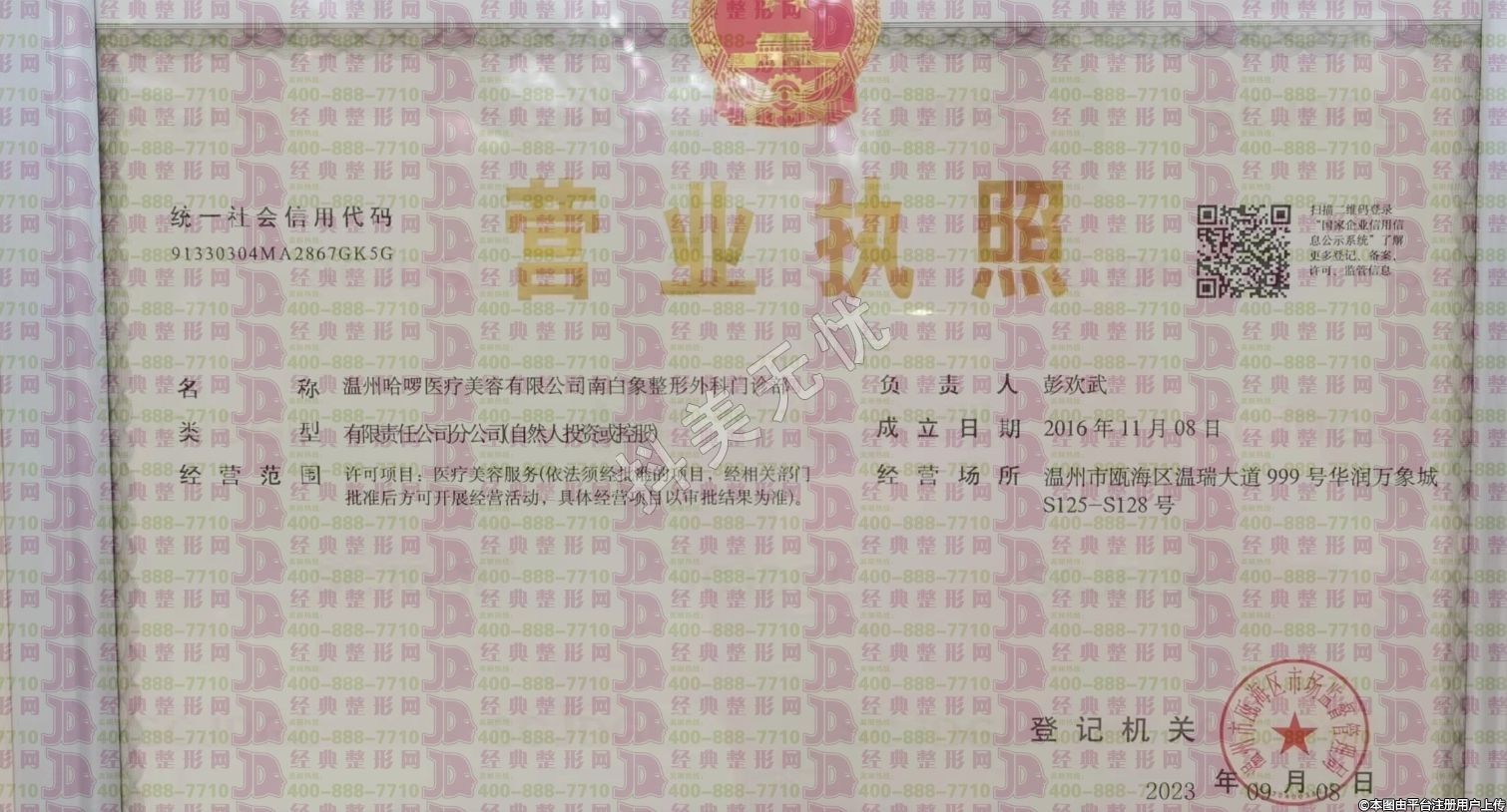 發(fā)證機關:溫州市甌海區(qū)衛(wèi)生健康局