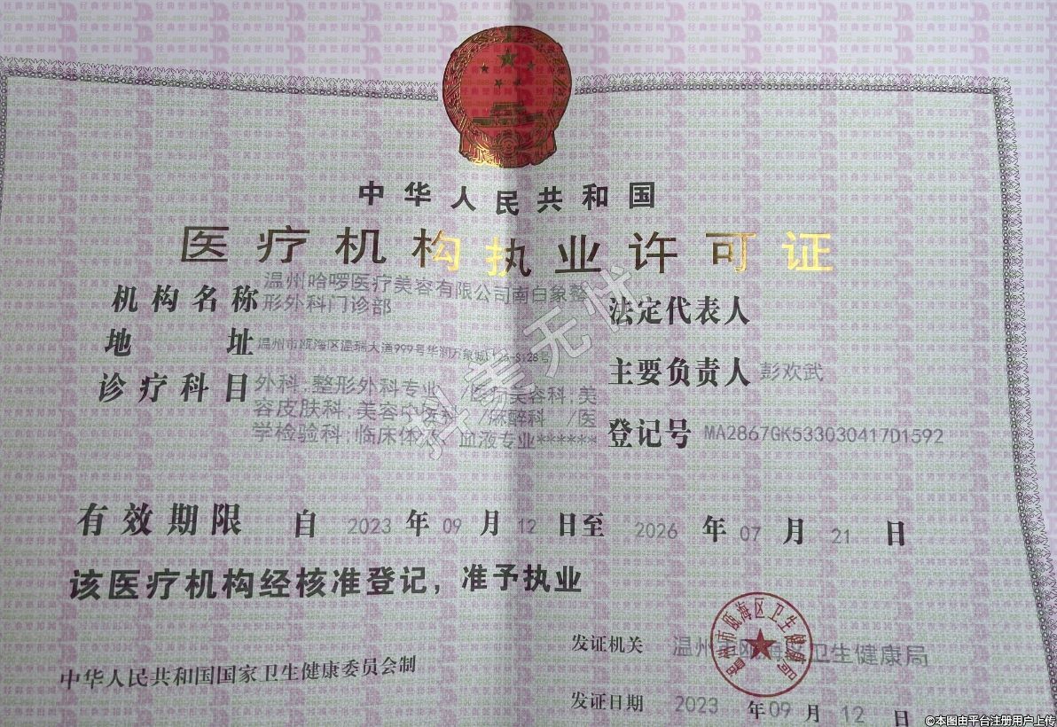 機構名稱:溫州哈啰醫(yī)療美容有限公司南白象整形外科門診部